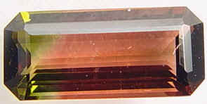 6.25 cts. Bi-color tourmaline emerald cut Single