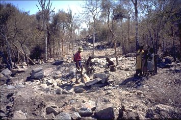 Tombomana is back home in 1994, he takes advantage of beginning tourmalines research again. In October 1995, the young man is in Ampamata, -190 kilometers far from there- where he practices his job as a teacher. It is there that we meet him and it is at this period that the Tsaniria deposit is exploited. It will produce small chrome tourmalines quantities during two years.
