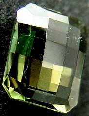kornerupine is overall greenish. The blue sparkles are light and visible when