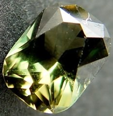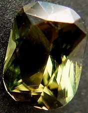 kornerupine is overall greenish. The blue sparkles are light and visible when