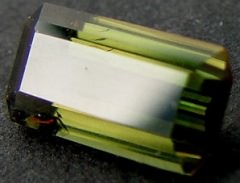 kornerupine is overall greenish. Blue and yellowish sparkles are visible when