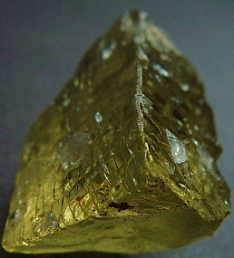 Damage at the contact zone with its bed rock and damaged at some corners. Transparent, no inclusion visible at the naked eye)
