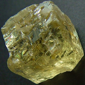 Damage at the contact zone with its bed rock, and cleavage on a face at the base of the crystal.