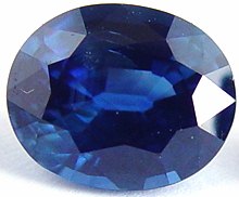 corundum is composed of pure alumina; its colouring is due to metallic | | oxide traces or inclusions. The color of sapphire, due to iron and titanium oxide, gives its best | | effect under daylight. Electric light makes it often dark. | | Gems are generally found in alluvium, but come either from basaltic slags, or from metamorphized