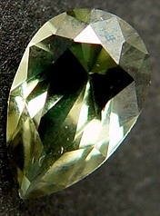kornerupine is overall greenish. The blue sparkles are light and visible when