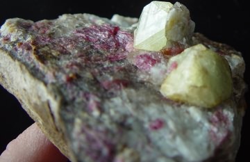 192 grms.2 Rhodizites on matrix Overall size of mineral specimen: 78.4x71 x 43 mm. individual crystal:19.8x 19.3 mm.