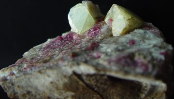 Rhodizite is an extremely rare mineral forming colorless, white to yellowish crystals