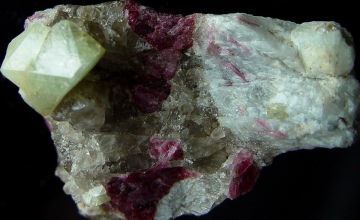 Rhodizite is an extremely rare mineral forming colorless, white to yellowish crystals