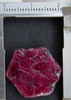 Ruby, natural tabular crystal 22.65 cts..  / 20.11 x 18.3 x 4.6 mm. ( Deep red ) semi glossy