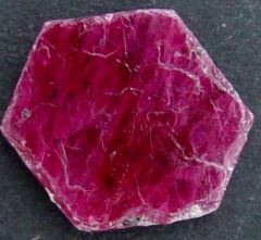 | Ruby, natural tabular crystal 6.92 cts. / 15.2 x 13.1 x 2.6 mm. ( Deep red ) glossy |