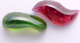 5.45 cts. cab. Green Tourmaline single & 4.74 cts. cab. Rubellite single