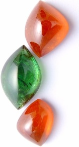 12.11 cts. cab. Green tourmaline single & 15.90 cts./ 9.44 cts. cab. Spessartite single