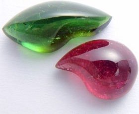 9.53 cts. cab. Green Tourmaline single & 7.56 cts. cab. Rubellite single