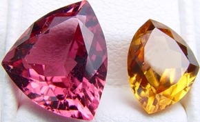 4.03 cts. Pink tourmaline & 2.29 cts. Hessonite trillant single