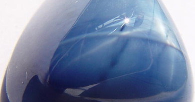 Unusual relief effect by the color play of two blue lines, one light and the other dark, crossing the sapphire's star.