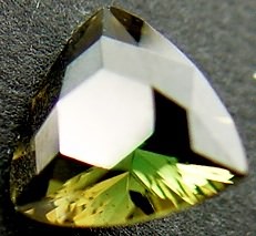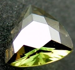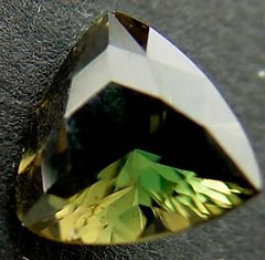 kornerupine is overall greenish. The blue sparkles are light and visible when